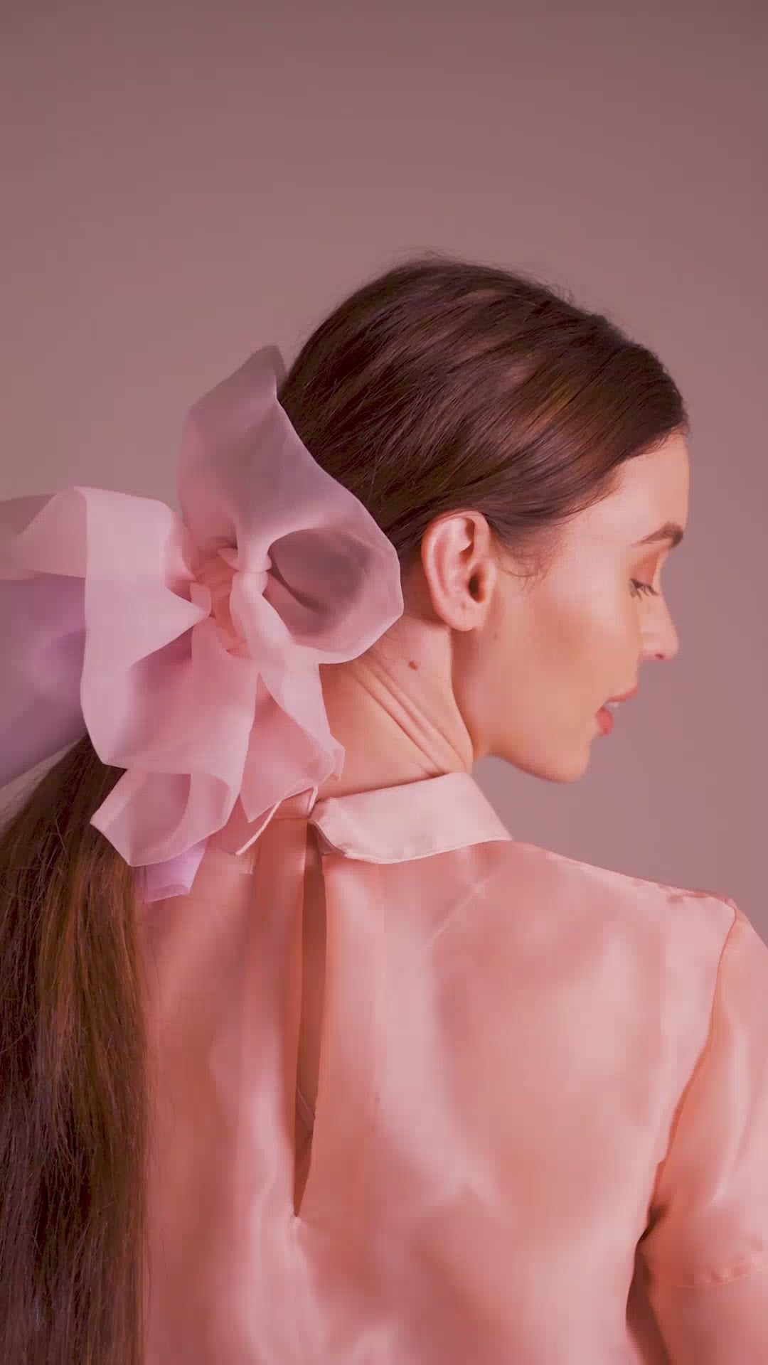 Oversized lavender and pink ombre scrunchie in sheer organza fabric.